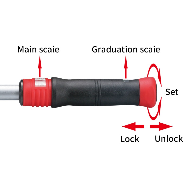 4,根据需要调节所需的扭矩,并确认调节机构处于锁定状态才可使用。应避免水分与油污进入扭力扳手本体内,以防零件锈蚀。